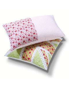 [デザイン] リバティープリントコットンの花模様とドッツのカバー。画像 2枚目の上部にコンシールファスナーが付いています。