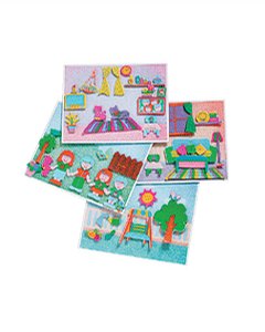 お家の中と外の背景ボード 4枚 + 150枚のフエルト・ピースのセット。ご兄弟やお友達と一緒にお子様の想像の世界を自由に表現できるフエルト・ボードです。