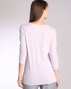 グレーがかった淡いラベンダー色にタイダイ。バックは無地。 襟口はきりっぱなし加工で斬新です。