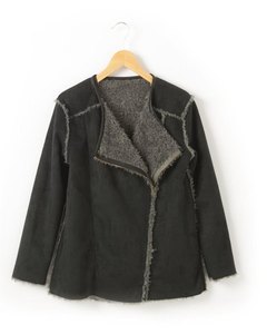 [色・デザイン] お色は黒とグレーのリバーシブル。ざくっとした感じのハーフコートです。