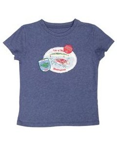 [デザイン] ヴィンテージ ウォッシュ調の柔らかコットンにスピードボートで遊ぶ男の子達のワッペンが夏らしいデザインです。