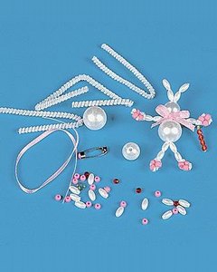 ビーズをモールでつなげてウサギのバッジを作成します。