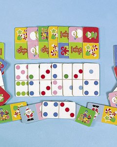大きなサイズの木製ドミノです。パステルカラーのドッツとクリスマスにちなんだかわいいイラストの両面でドミノゲームが楽しめます。小さなお子様の数や絵の認識から児童英語のクラスアクティビティーまで幅広くお使いいただけます。