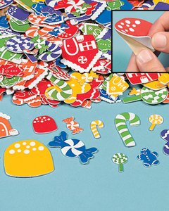 お菓子の国に出てきそうなクリスマスキャンディーと家のデザイン。シールタイプのフォーム製ピースになります。