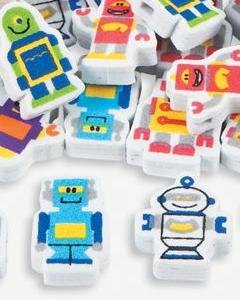 1.2cm大のフォーム製のビーズです。かわいいロボット柄。 1セット 200個でお届けいたします。絵柄、お色はお任せください。クラフトにご活用ください。