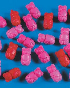 確かに! 手のひらで転がすと面白い動きをしながらクマが転がっていきます。クマの色は赤、ピンク、赤紫の 3色になります。 ※ 単品の場合はお色はお任せください。