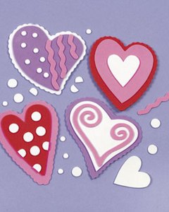 ハート形のフォーム製ピースを重ねて飾り付けて作るマグネットキット。母の日のギフトやバレンタインのクラフトにどうぞ。