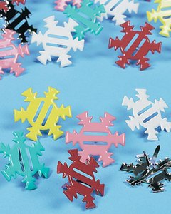2.5cm大の雪の結晶型をしたかわいいブラッズ。赤、ピンク、水色、黄緑、シルバー、白の 6個セット。 9.5mm幅までのリボンが通ります。