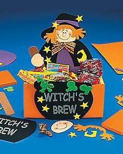 かわいい魔女の小物入れキットです。 "Trick or Treat" のスナックはもちろんゲームの景品、パーティーの入場券などお好きな物をお入れ下さい。