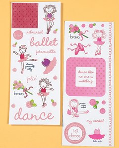 フロック加工柔らかな素材が文字やライン、ドット、チュチュ、バラの花などに使われています。 1セットに 2シート入り。合計 36枚のシールが入っています。 ※ 画像 2枚目は作品例です。