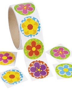 [商品説明] 3.5cm大の丸いシール。1シートに 6枚のシールが付いています。春らしく明るいポップなイラスト。