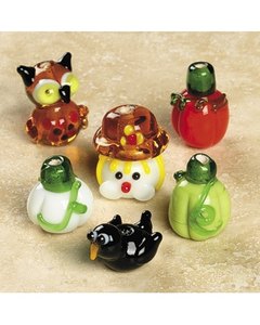 かかし、フクロウ、カラス、かぼちゃ、ニガウリの形をしたガラスビーズ 6個。