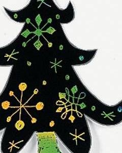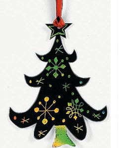 シートの表面をキットのスティックで擦りながら絵を描きます。シートの表面の黒い膜が削られて下から虹色の背景が線に沿って見えてきます。絵や文字を自由に描いて世界に 1つしかないオーナメントを作ってみましょう。