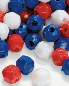 赤、青、白のトリコロールカラーのビーズの詰め合わせ。プラスチック製。アメリカやフランスのイメージです。色の配合はランダムになります。