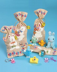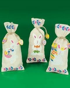 ベイジュのキャンバス地にかわいいラビットがプリントされたギフトバッグです。木製のイースターエッグ (平)のモチーフが付いた麻紐できゅっと結びます。プリントの絵柄はお任せください。袋のみになります。中味は入っていません。