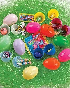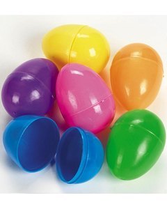 エッグ型のプラスチック容器です。中にお菓子やおもちゃを詰めてエッグ・ハンティングにお使いください。お色の選択はできません。