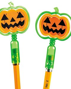 鉛筆の上の部分を飾るキャップです。パンプキンの部分がくるくると回るしかけになっています。