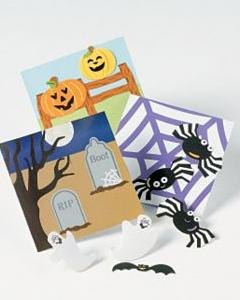 6cm四方の台紙に付属のシールを貼っていくワークです。裏面をハロウィンパーティーの招待状にしてもいいかも。 ※ 1枚お求めの場合は、絵柄はお任せください。
