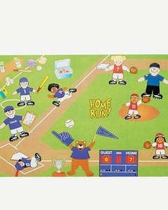 横 28cm x 縦 21.5cm大の背景用の台紙に 65枚のシールシートが付いています。自由にバッターやコーチ、選手のシールを貼り付けて、オリジナルの試合シーンを完成させてください。台紙とシールの 2シートとなります。