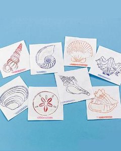 プラスチック製のシートの上に画用紙や紙を乗せて、その上からクレヨンや色鉛筆で擦っていくと、シートの貝殻が浮かんできます。※ 貝の絵柄はお任せください。