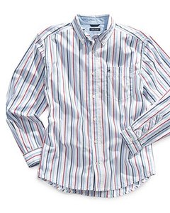 [色・デザイン] 赤、白、青、水色のストライプ。男の子用ボタンシャツ。