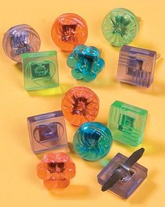 12mm大の丸、四角、花型のプラスチック製のブラッズ 6個セット。 ※ お色と形はお任せ下さい。