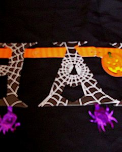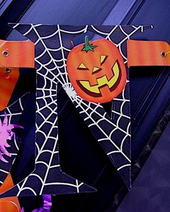 紙製バナーは長さ 240cm。蜘蛛の巣とオレンジがハロウィンらしいデザインになっています。ドアに貼るだけでぐっとハロウィンらしさが出るデコレーションです。