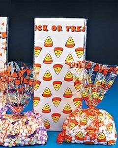 透明な袋にキャンディーコーンの絵柄が付いたギフトバッグです。ポップコーンやキャンディなどのお菓子入れにどうぞ。