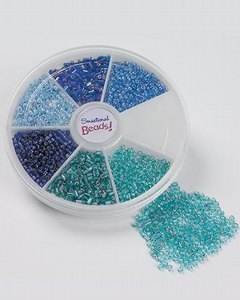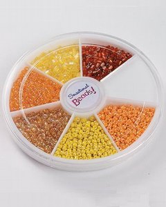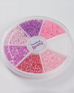 直径 8cmのケースに 1mm - 2mm大のビーズが入っています。