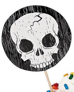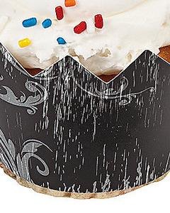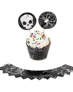 市販や手作りのカップケーキ用のカバーとピックのセット。ピックは爪楊枝に直径=5cm大の紙製デコレーションが付いています。