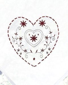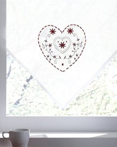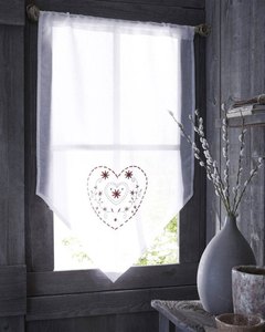 [色・デザイン] 白のオーガンジー調の生地に赤の刺繍が入っています。突っ張り棒やポールを通して使用するタイプです。