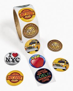 ニューヨークを題材にした楽しいデザインのシールです。1シートに 6枚のシールが付いています。 3.5cm 大。