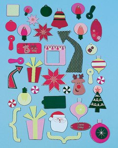 クリスマスにちなんだ絵柄や矢印が 39ピース入ったセットです。スクラップブッキングなどのクラフトにどうぞ。