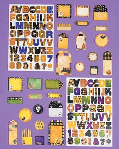 ハロウィーンをテーマにしたカードストック用のシール 2シートとタグ 2シートのセットです。