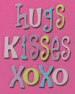HUGS、KISSES、XOXO の アルファベット 計 14個のピースです。スクラップブッキングなどのクラフトにどうぞ。