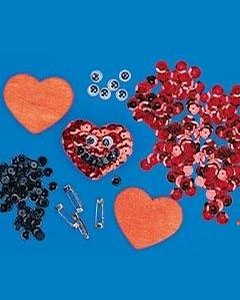 4.5cm大の木片のハートに赤と黒の 2色のスパンコールを貼り合せて作るバッジです。