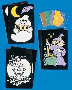 ハロウィンをテーマにした 4色の砂絵になります。ゴースト、魔女、ジャコランタンの 3枚セットでお届けします。