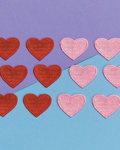 2cm大のハート型刺繍ピース 2枚。ピンクと赤の 2色組です。