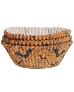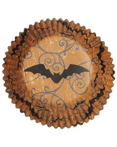 [デザイン] オレンジ色に黒のコウモリ柄のカップ 75枚入り。ハロウィンのお菓子作りにどうぞ。