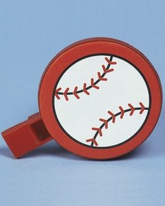 野球、サッカー、アメフトのシールが貼られたプラスチック製の笛です。声を吹き込む感覚で音を振動させて楽しみます。あくまでもおもちゃ感覚で、ゲームの景品やギフトバッグのおまけにどうぞ。