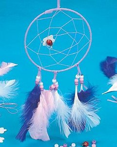 ピンクと紫の羽を使ったかわいいドリームキャッチャーを作成するキットです。