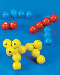 2連 (目玉)が 1本、 4連が 2本、5連が 1本の木製ビーズを組み合わせて動物を作るおもちゃです。