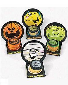 組立てた容器にカップケーキを置くだけで、ぐーんとハロウィンらしい演出になります。