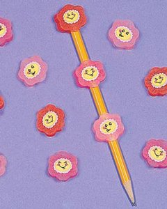 にっこりと微笑む 2.5cm大の花の形の消しゴム。裏面が縦に割れていて、鉛筆の上部に付けられます。