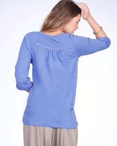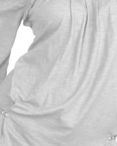[色・デザイン] 七分袖、ラウンドネック。ネックラインと両サイドのリベット留めがアクセント。