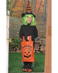 オレンジ色のバッグににっこり笑った “Jack-O-Lantern”と TRICK OR TREAT! の文字が入っています。バッグはマチ付きでリュックのように背中に背負ったり、紐を絞って巾着としてお使いください。たくさんのお菓子やプレゼントが入りますよ!