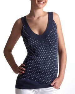 [色・デザイン] 紺地に白のドッツ。 V字ネック。