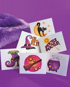 魔女にちなんだ絵柄で、ラメが入った女の子用のタトゥーになります。異なる図柄が 6枚入っています。 ※ 1枚のみお求めの場合は絵柄はお任せください。