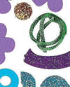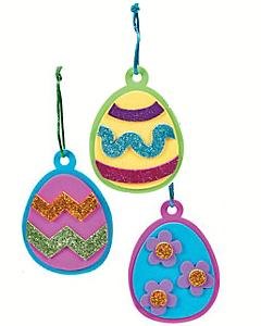 卵型の台紙にキットのフォームピースを貼り付けて完成させるオーナメントのクラフトです。飾りピースの一部はラメがコーティングされていて、綺麗です。