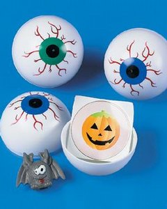 球形の目玉型容器です。キャンディーやチョコレートなどを詰めてハロウィンの景品やトリートにどうぞ。